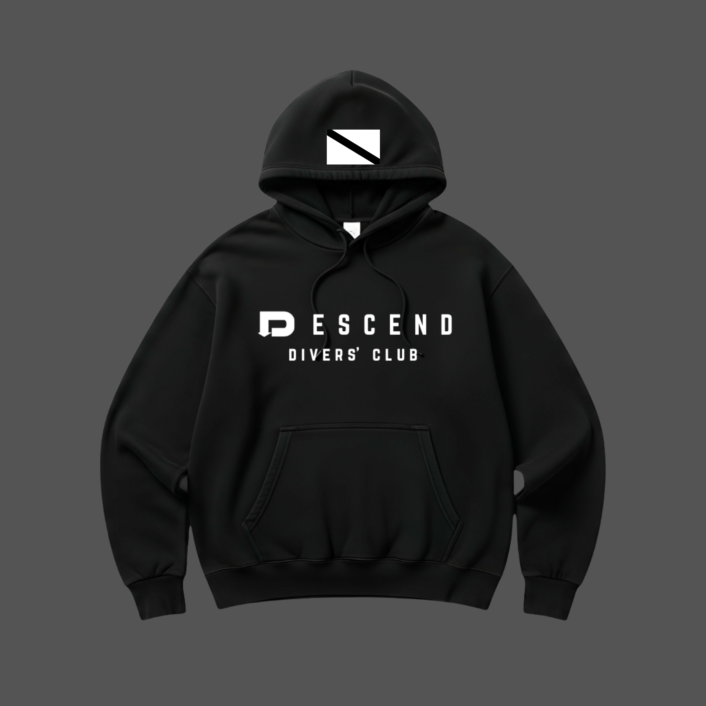 Descend Performance Hooded Sweatshirt Engineered for post-dive comfort, this microfiber performance polyester hoodie accelerates moisture evaporation while maintaining exceptional softness against the skin. The advanced fabric technology prevents the chill that follows water exposure, making it an essential layer for divers transitioning from water to air. Lightweight yet insulating, it packs easily into dive bags without bulk. The hood provides additional warmth protection for the head and neck—areas most susceptible to heat loss after immersion. Ideal for boat decks, beach changes, or casual wear between dives.